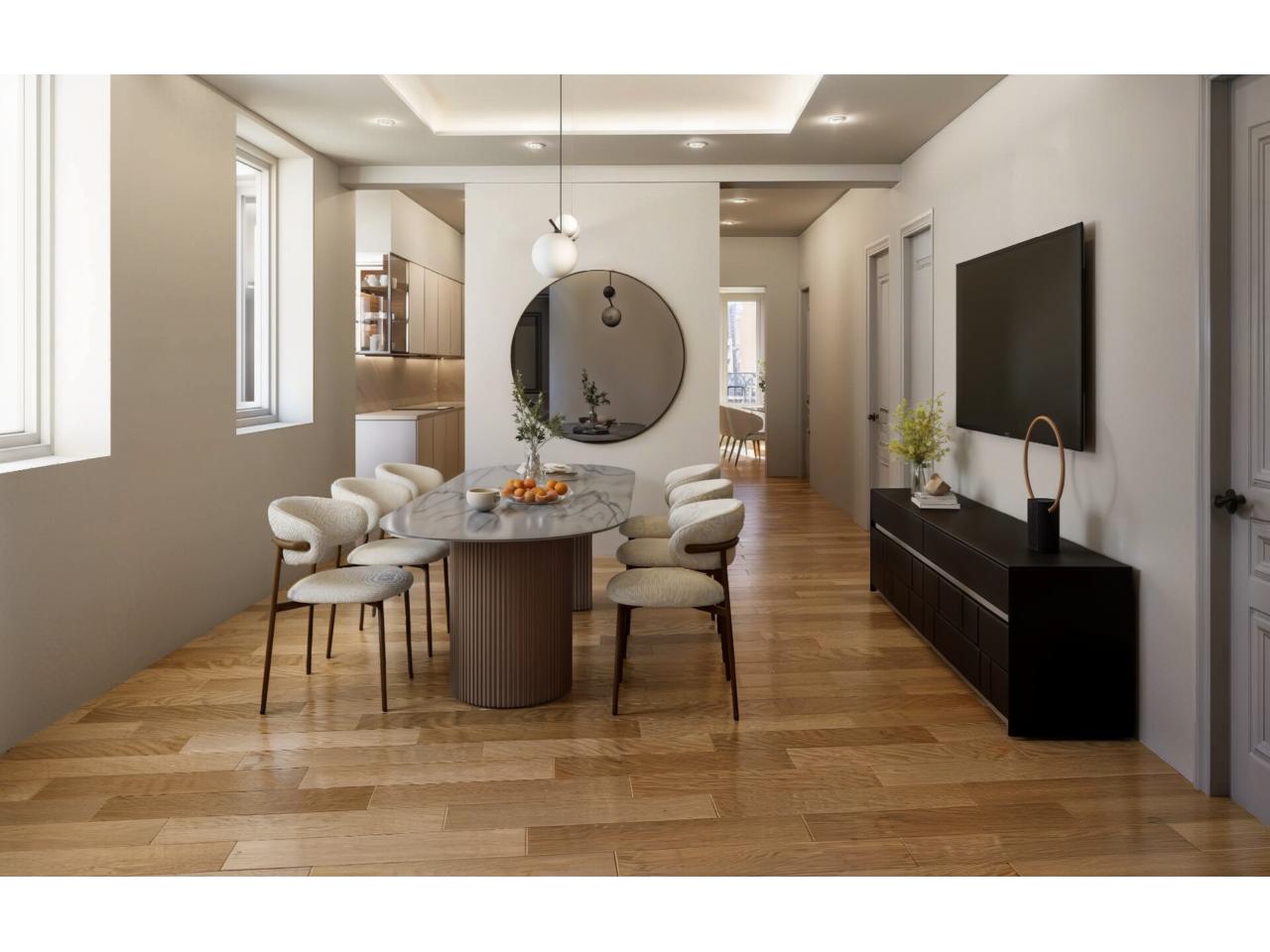 Este edificio histórico ha sido cuidadosamente rehabilitado, respetando su esencia original y adaptándolo a las exigencias actuales, ofreciendo hogares sofisticados con distribuciones funcionales y una estética cuidada al detalle. Las viviendas, de 3 y 4 dormitorios, destacan por su amplitud, luminosidad y la calidad de sus acabados, con grandes ventanales que inundan los espacios de luz natural y potencian la sensación de confort.